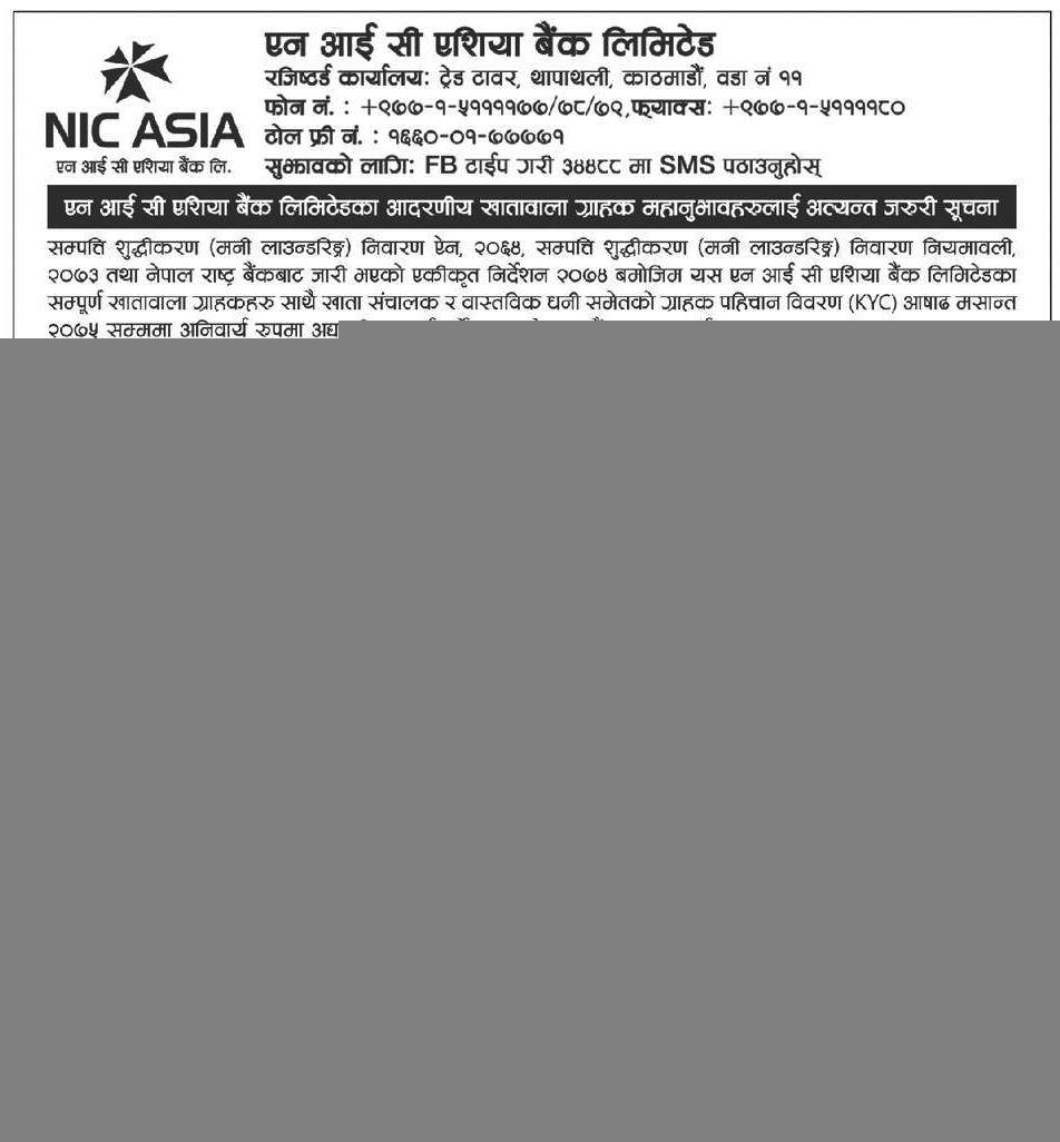 Nic Aisa बैंकका ग्राहकहरुलाई अत्यन्त जरुरी सूचना
