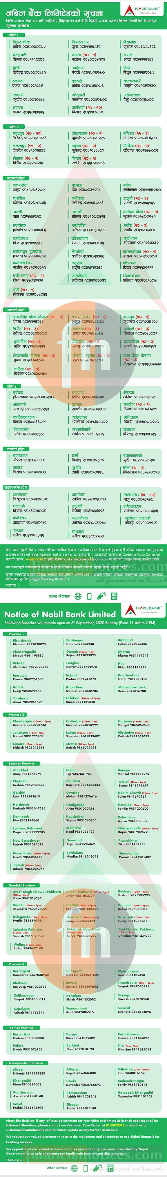 Nabil बैंकको शाखा कार्यालयहरू खुल्ला रहने सम्बन्धी सूचना !!!