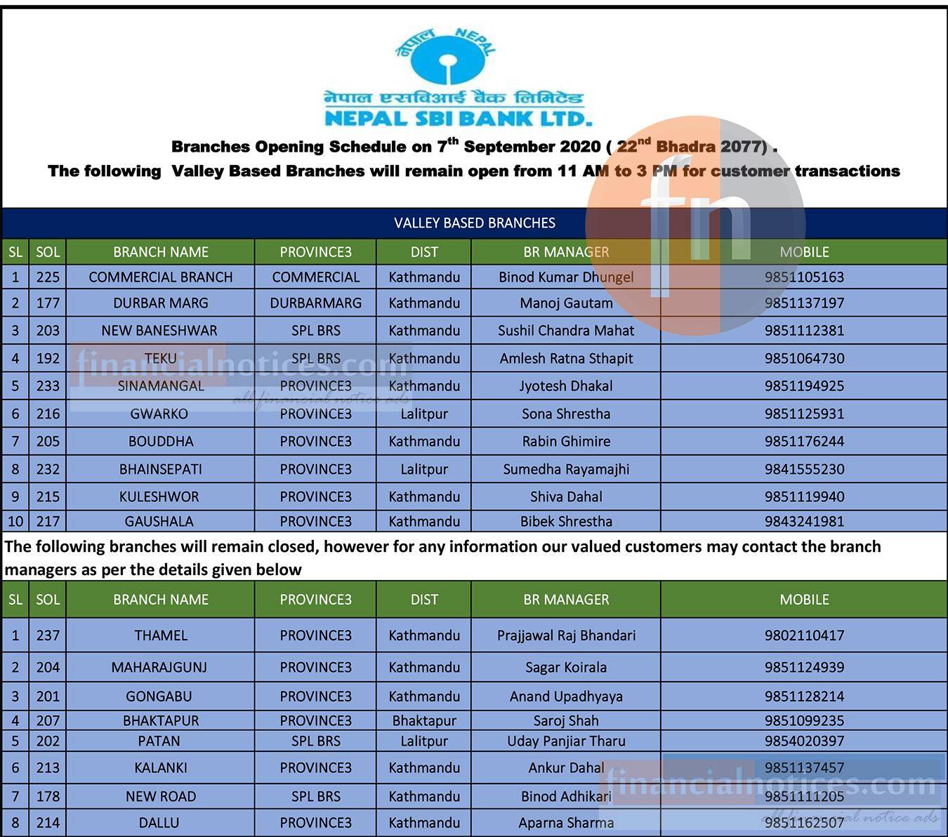 Nepal SBI बैंकका खुल्ला रहने शाखाहरु बारे सूचना