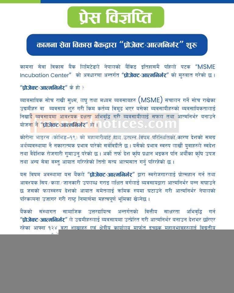Published by Kamana Sewa Bikas Bank Official Page on 2077-5-22