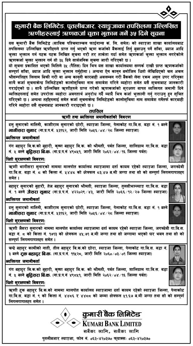 Published by Kumari Bank Ltd (KBL) Annapurna Post on 2074-8-14