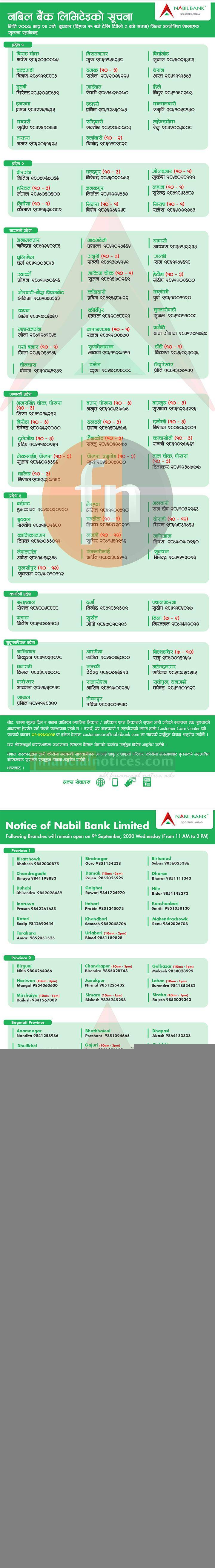 Nabil बैंकको शाखाहरु खुल्ने सम्बन्धि सूचना