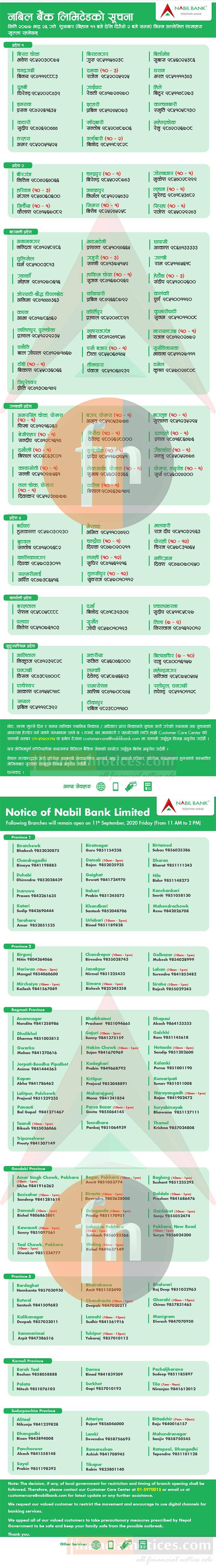 Nabil बैंकको शाखा कार्यालयहरू खुल्ला रहने सम्बन्धी सूचना !!!