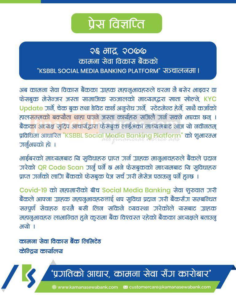 Published by Kamana Sewa Bikas Bank Official Page on 2077-5-26