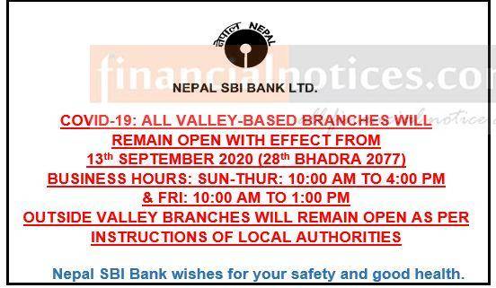 Nepal SBI बैंकका खुल्ला रहने शाखाहरु बारे सूचना