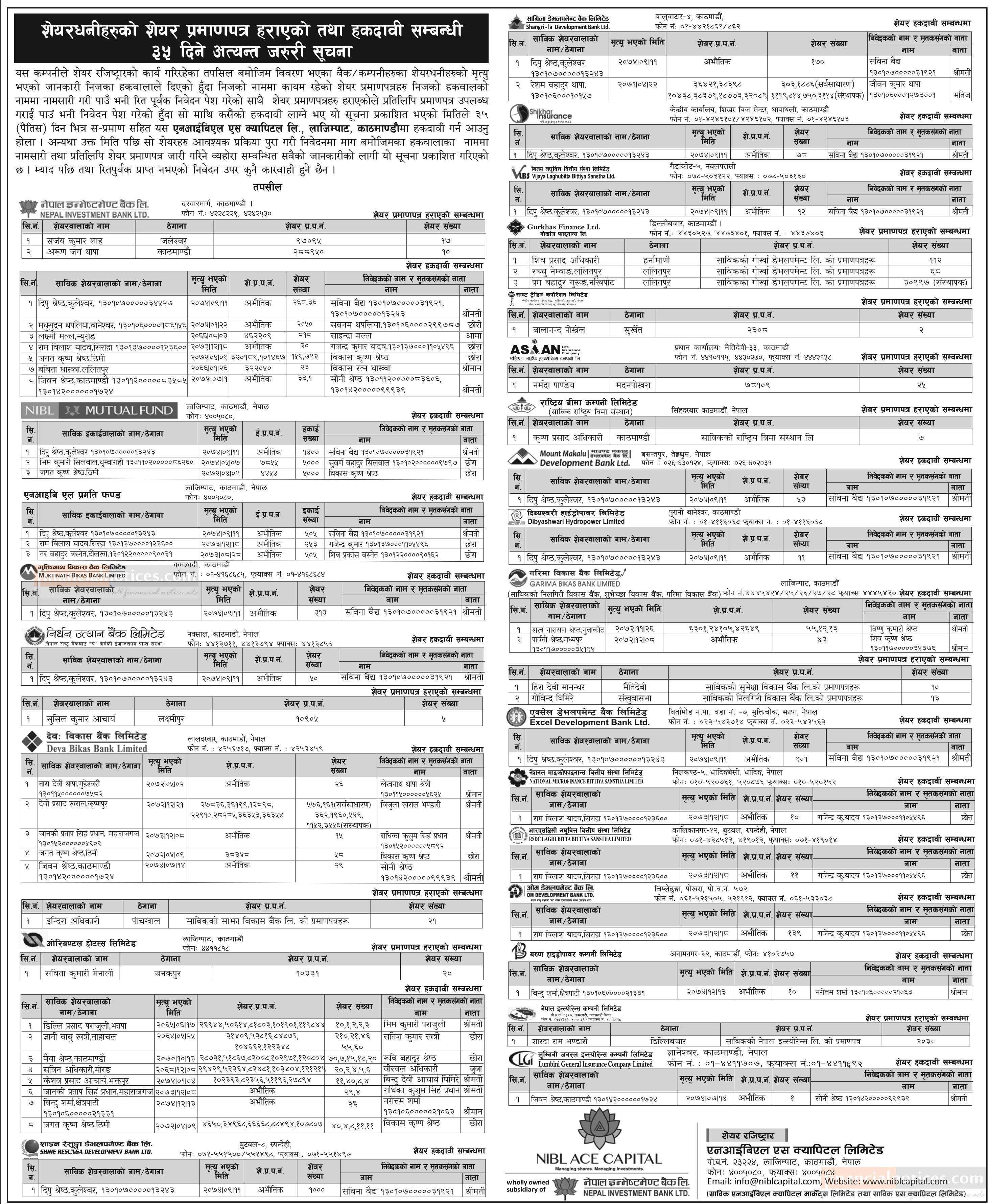 शेयर प्रमाण-पत्रको हकदावीको अत्यन्त जरुरी सूचना