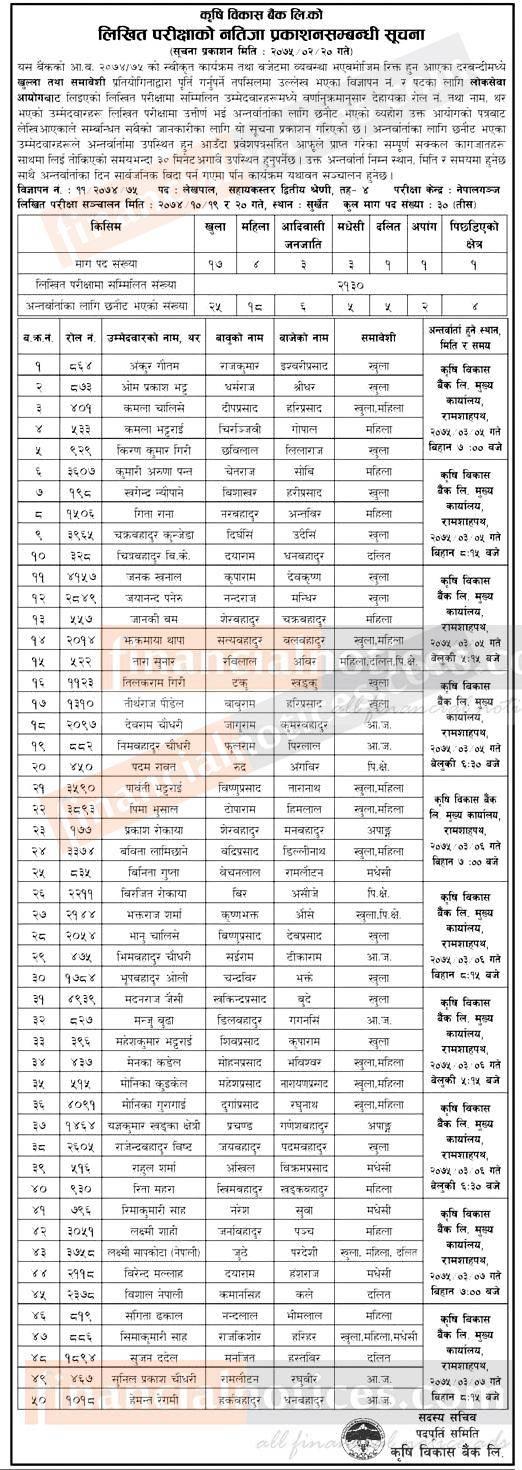 लिखित परिक्षाको नतिजा प्रकाशन सम्बन्धी सूचना !