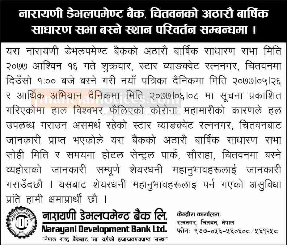 Published by Narayani Dev. Bank Official Page on 2077-6-08