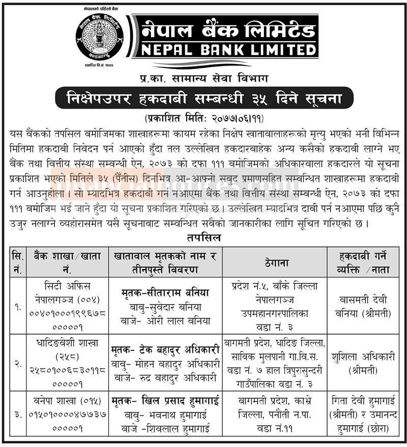 Published by Nepal Bank Limited Gorkha Patra on 2077-6-11