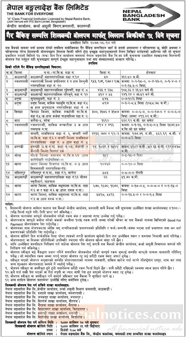 गैर बैकिङ्ग सम्पत्ती लिलाम बिक्री सम्बन्धी सूचना