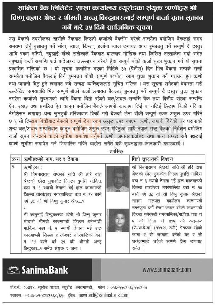 Published by Sanima Bank Limited Rajdhani Newspaper on 2075-2-23