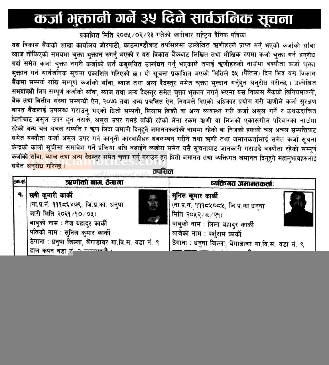 कर्जा भुक्तानी गर्ने ३५ दिने सर्वजनिक सुचना !!!