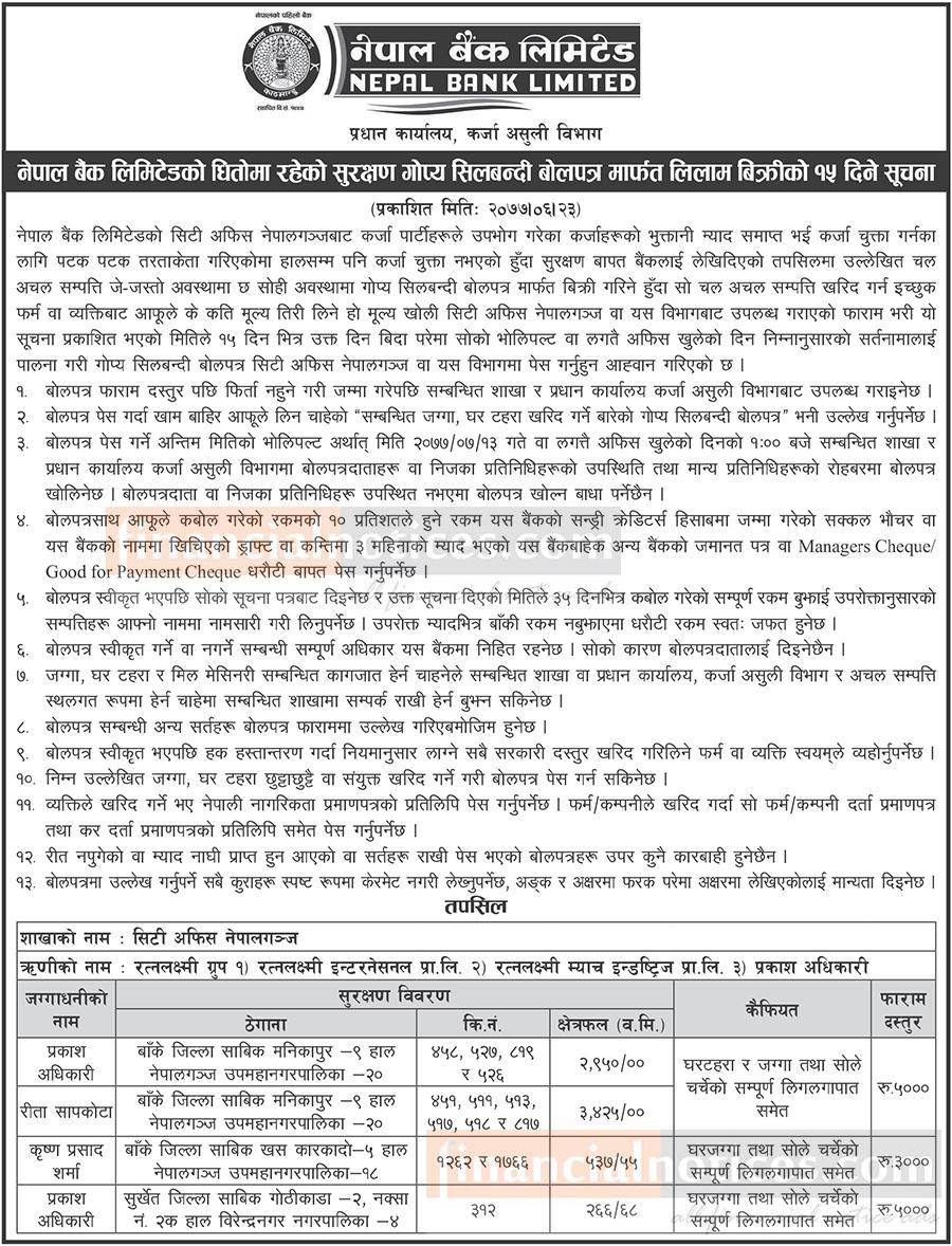 Published by Nepal Bank Limited Gorkha Patra on 2077-6-23