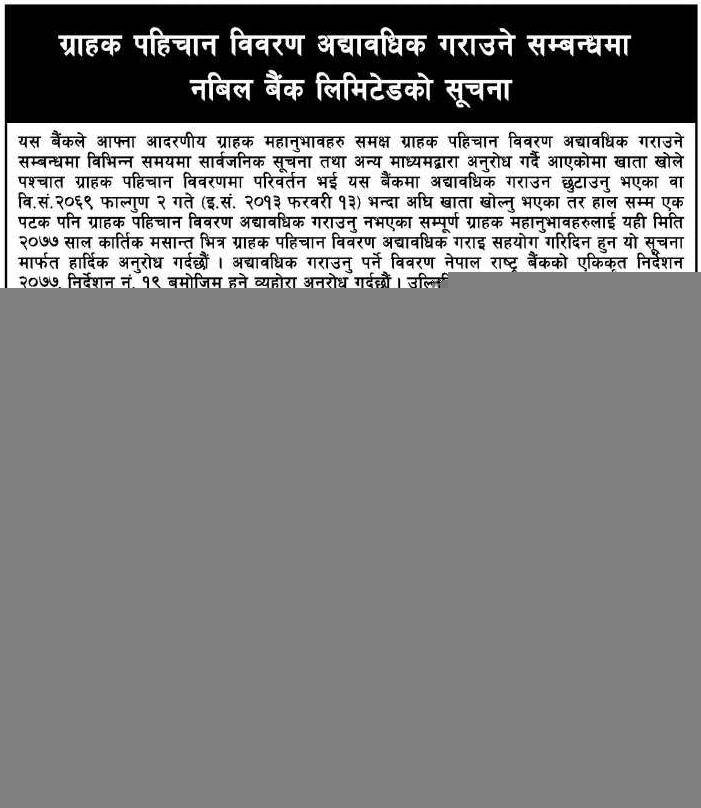 ग्राहक पहिचान विवरण अद्यावधिक गराउने सम्बन्धी सूचना