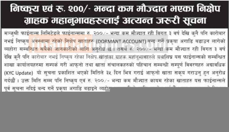 निष्कृय एंम २ सय कम मौज्दात भएका ग्राहकको लागि सूचना