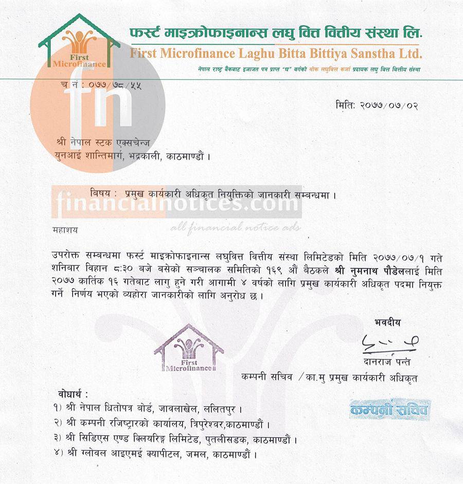 प्रमुख कार्यकारी अधिकृत नियुक्ति सम्बन्धी सूचना
