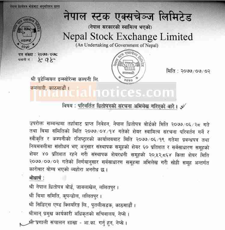 संस्थापक शेयर सर्वसाधारणमा परिवर्तन सम्बन्धी सूचना