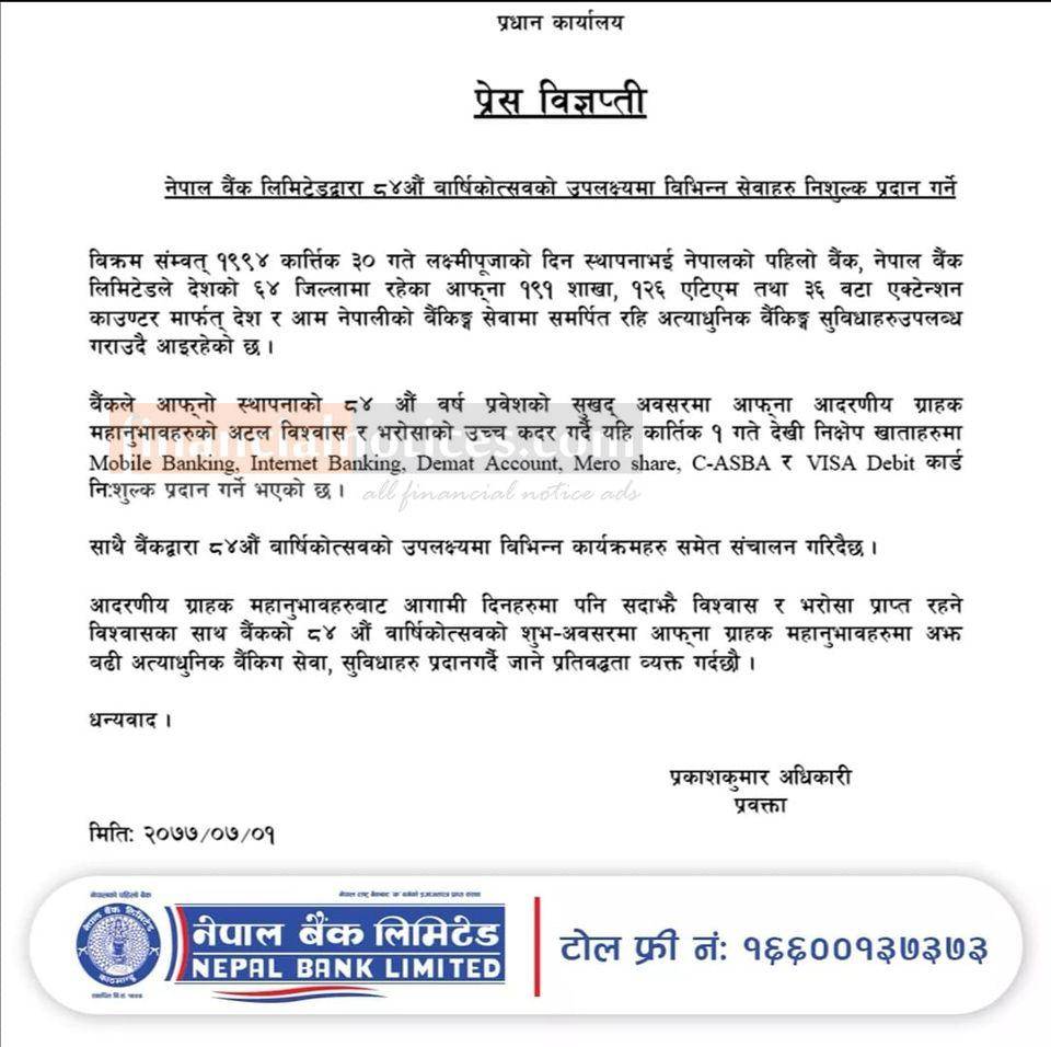 Published by Nepal Bank Limited Official Page on 2077-7-03