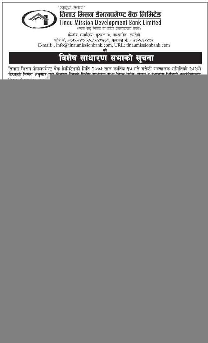 Published by Tinau Mission Dev. Bank Annapurna Post on 2077-7-19