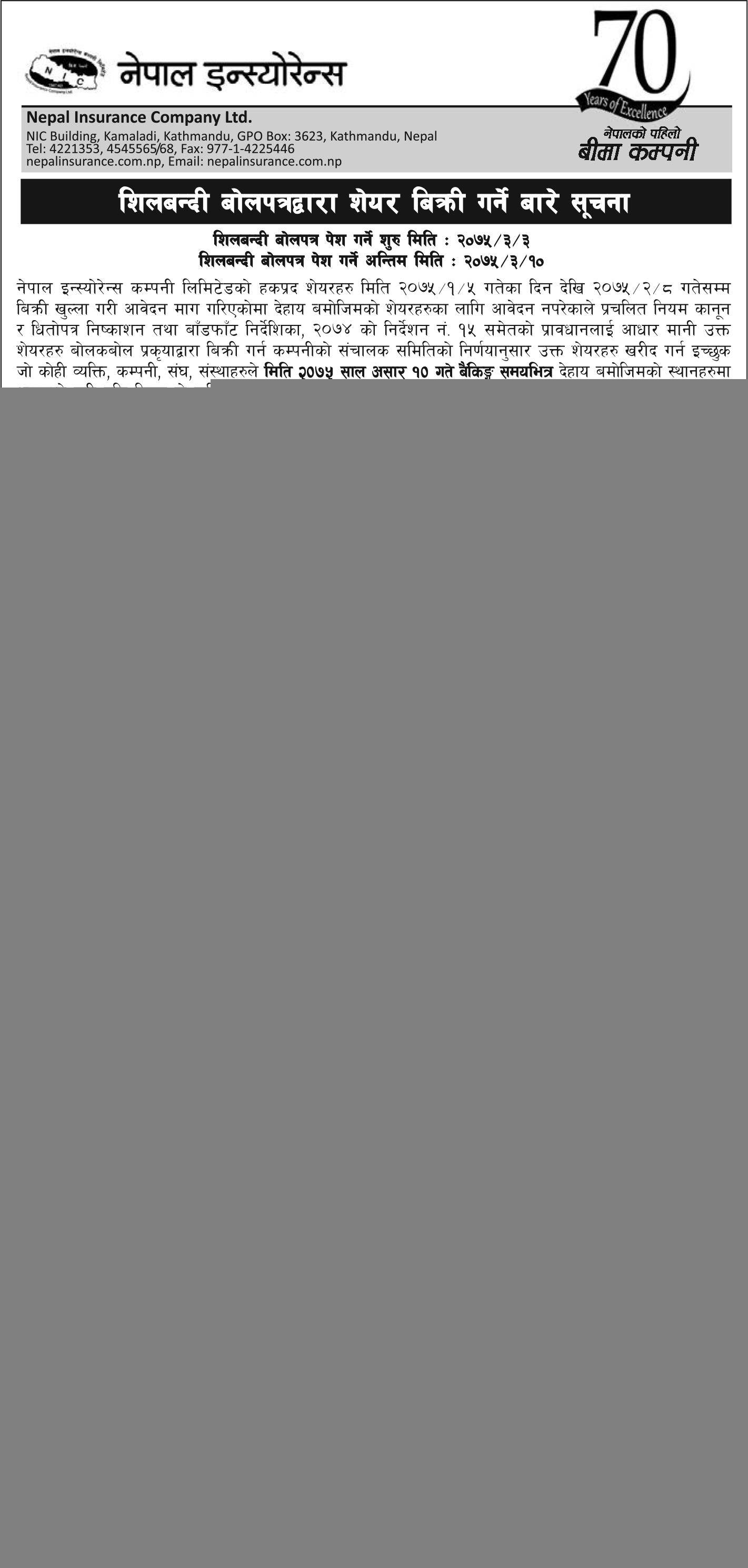 शिलबन्दी बोलपत्रद्वार शेयर विक्रिको सूचना