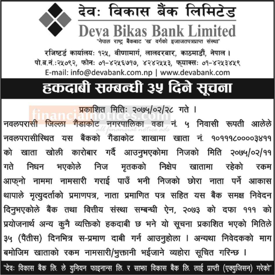 Published by Deva Bikas Bank Annapurna Post on 2075-2-28