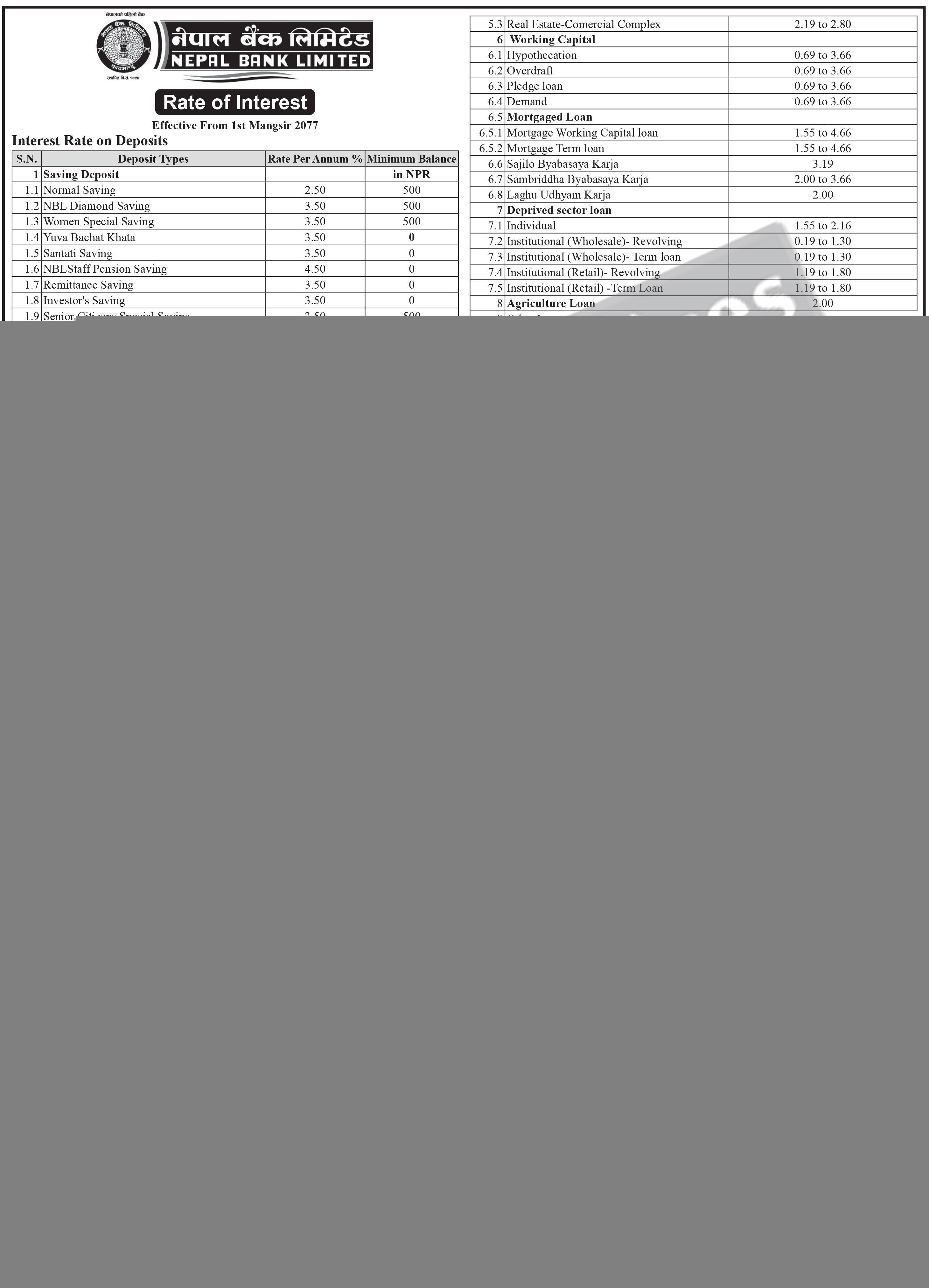नेपाल बैंकको नयाँ व्याजदर सार्वजनिक