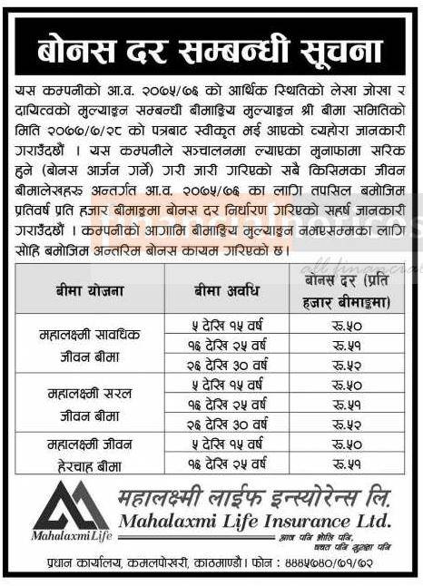 Published by Mahalaxmi Life Insurance Abhiyan News Paper on 2077-8-03