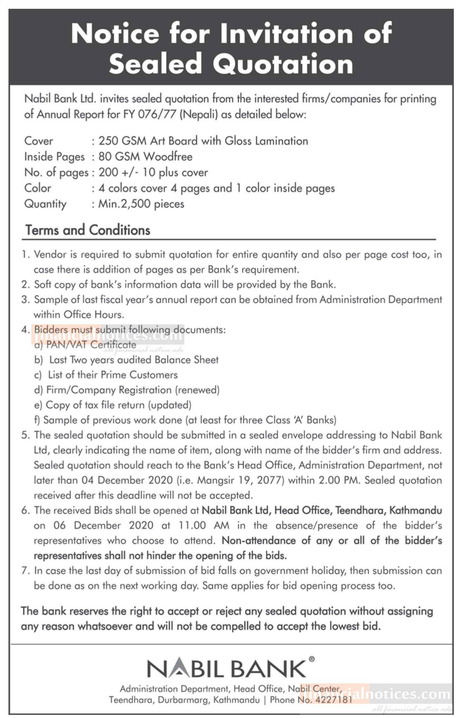 Notice for Invitation of Sealed Quotation