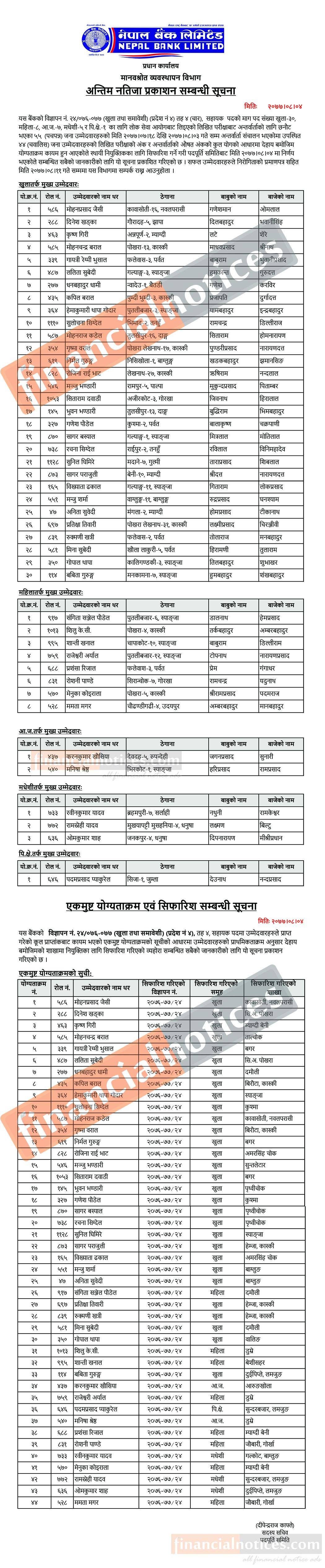 परीक्षाको अन्तिम नतिजा प्रकाशन तथा नियुक्तिको लागि सिफारीस गरिएको सूचना