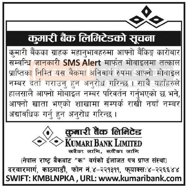 Published by Kumari Bank Ltd (KBL) Kantipur Newspaper on