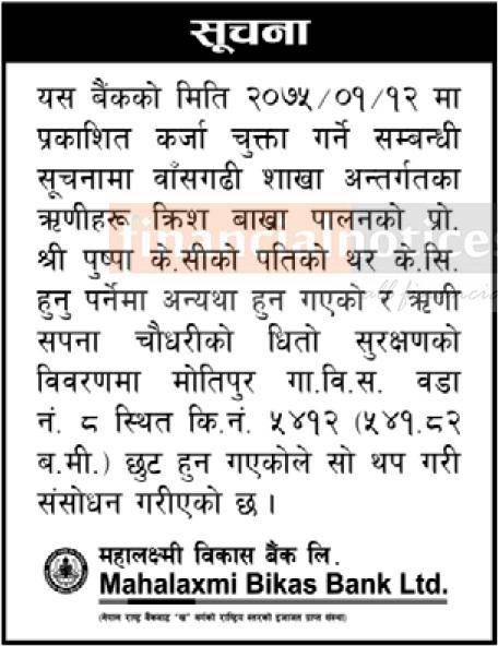 View More by Mahalaxmi Bikas Bank
