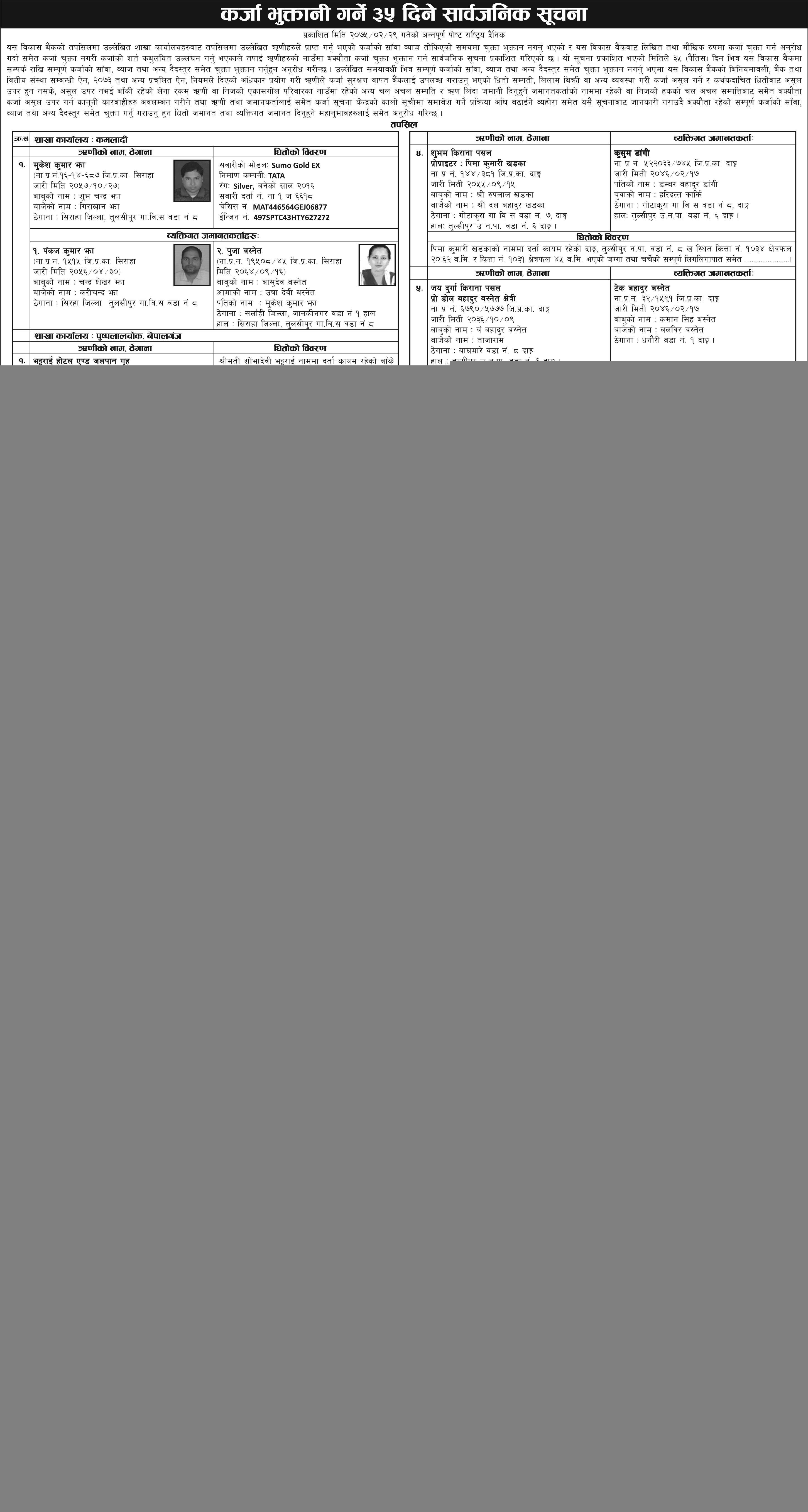 कर्जा भूत्तानी गर्ने ३५ दिने सार्वजनिक सूचना