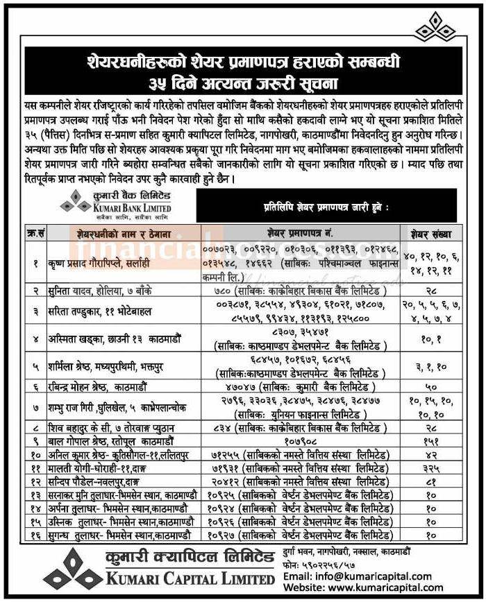Published by Kumari Capital Abhiyan News Paper on 2077-8-15