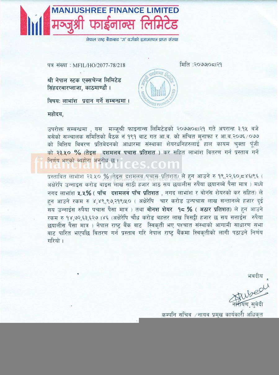 Published by Manjushree Finance Official Page on 2077-8-21