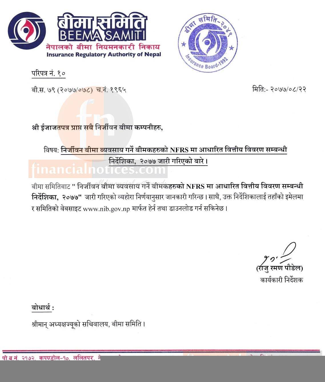 पुनर्बीमा र निर्जीवन बीमा कम्पनीले NFRS प्रणालीमा वित्तीय विवरण प्रकाशित गर्नुपर्ने बारे सूचना