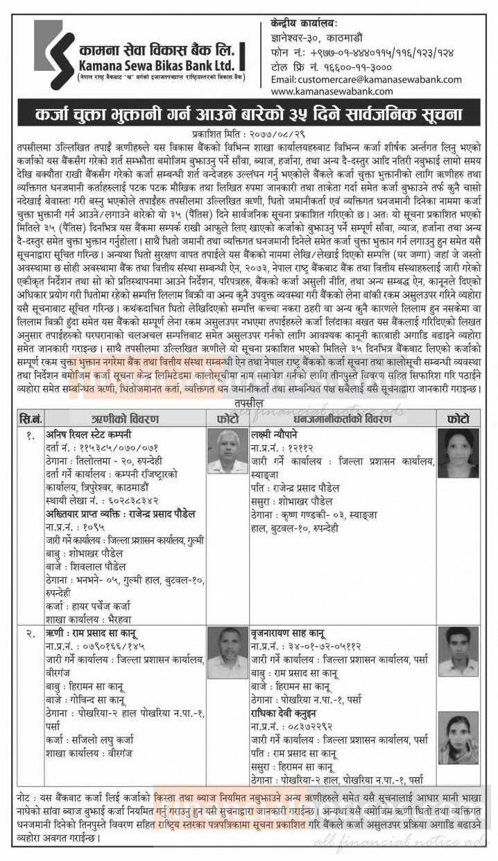 Published by Kamana Sewa Bikas Bank Official Page on 2077-8-29