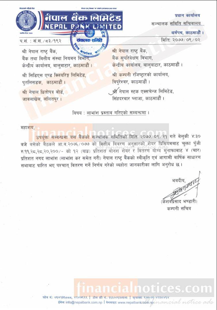 Published by Nepal Bank Limited Official Page on 2077-9-02