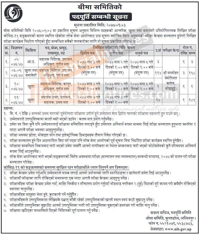 बीमा समितिको पदपूर्ति सम्बन्धी सूचना