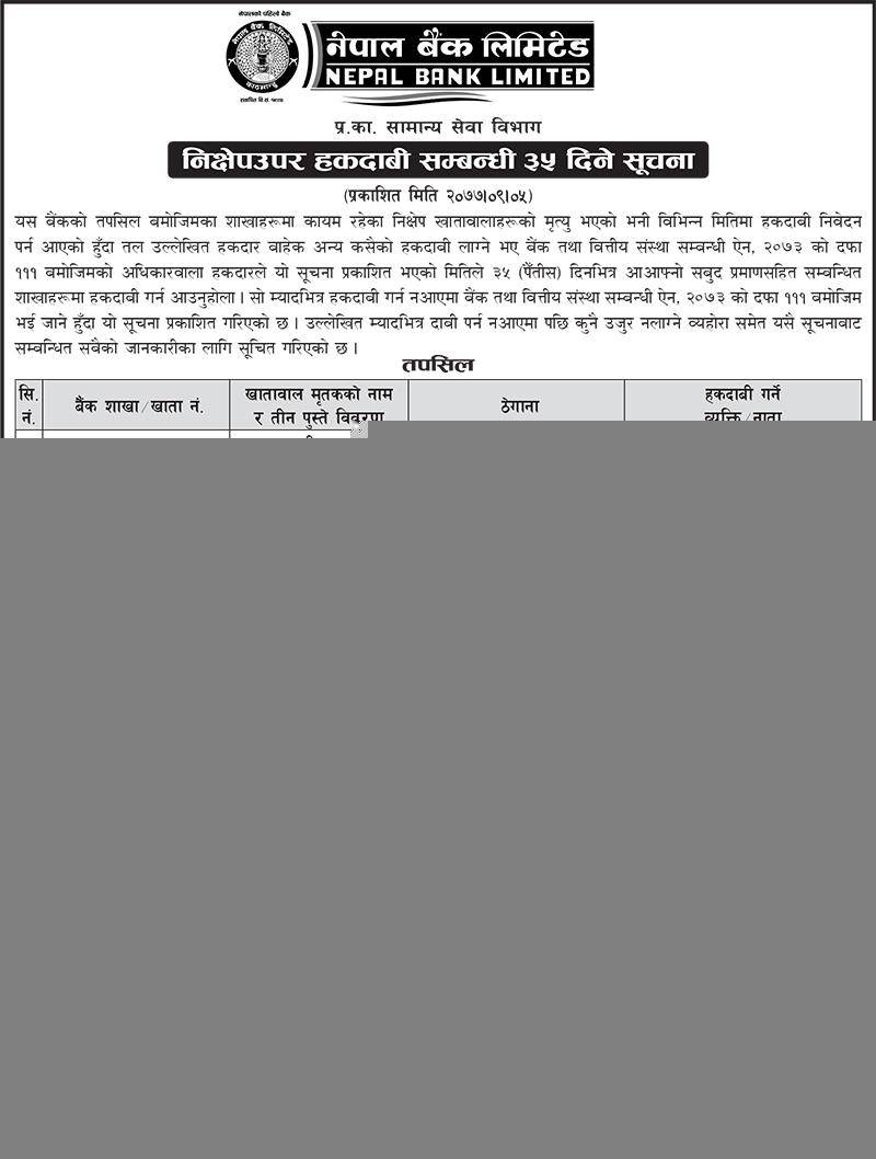 Published by Nepal Bank Limited Gorkha Patra on 2077-9-05