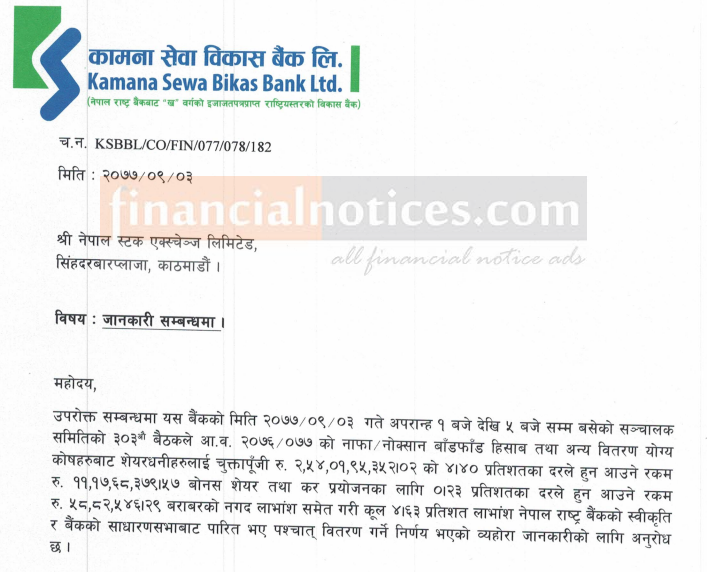 Published by Kamana Sewa Bikas Bank Official Page on 2077-9-05