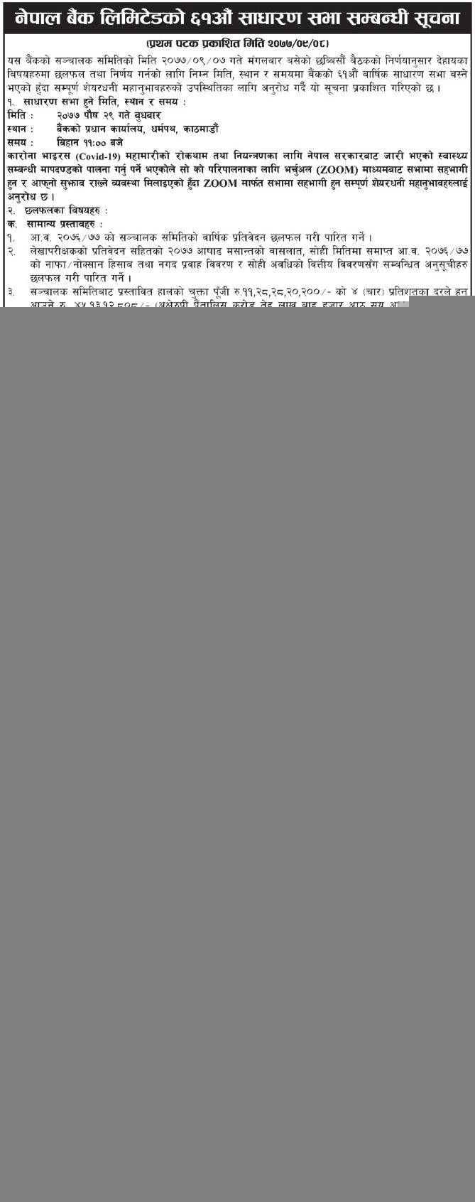 Published by Nepal Bank Limited Annapurna Post on 2077-9-09