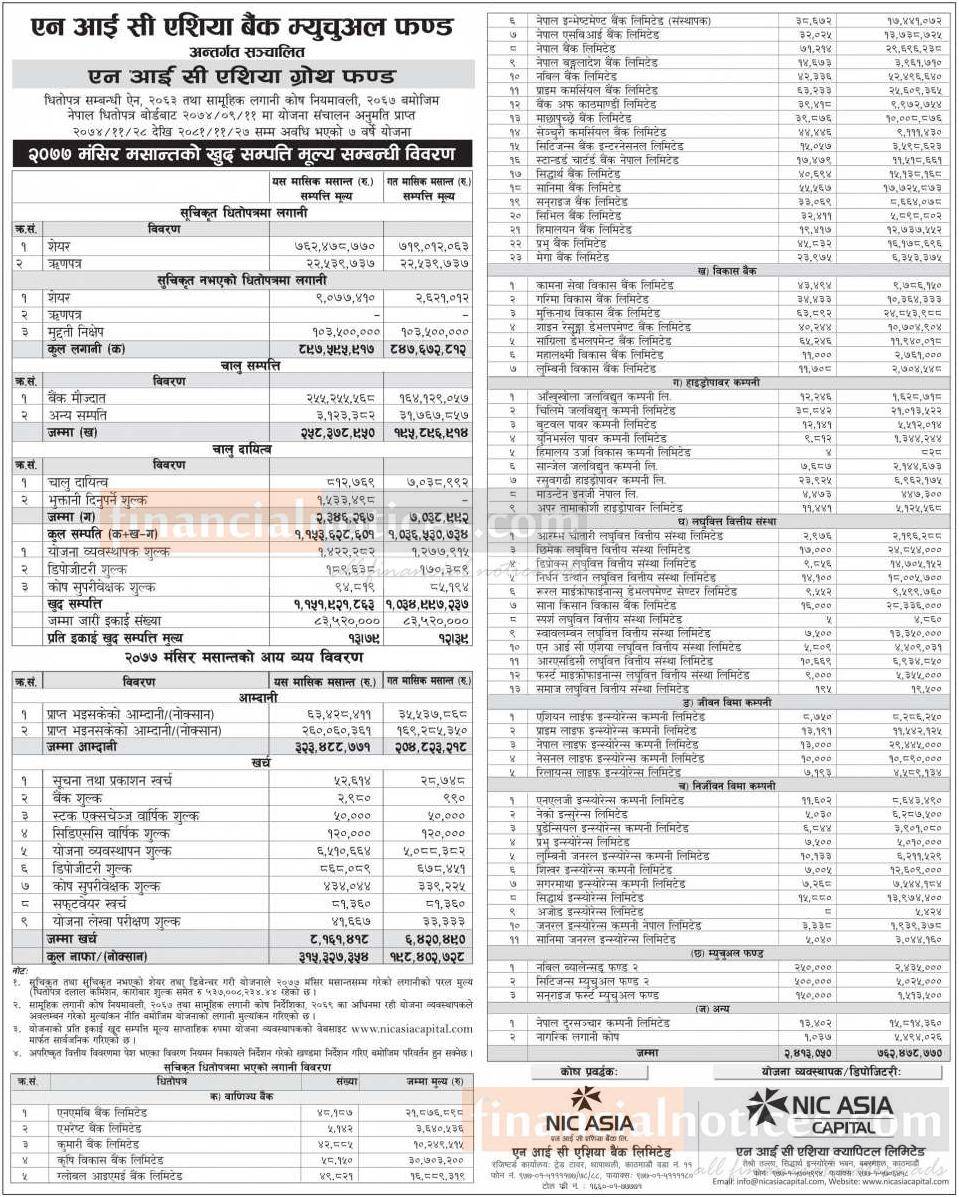 NIC Asia Growth Fund- खुद सम्पत्ति मुल्य सम्बन्धी विवरण