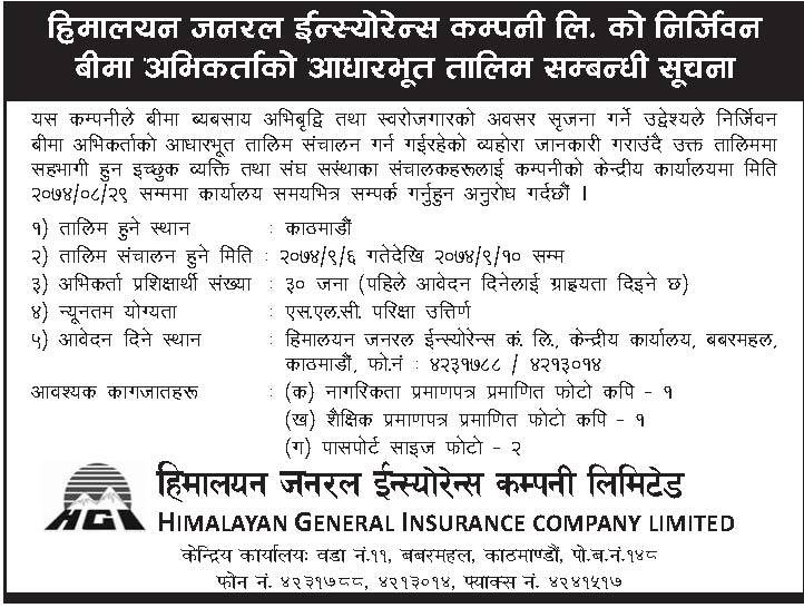 Published by Himalayan Everest Insurance http://www.hgi.com.np on 2074-8-26