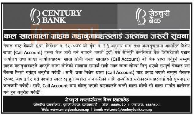 Published by Century Bank Ltd. Nagarik Newspaper on 2075-3-01