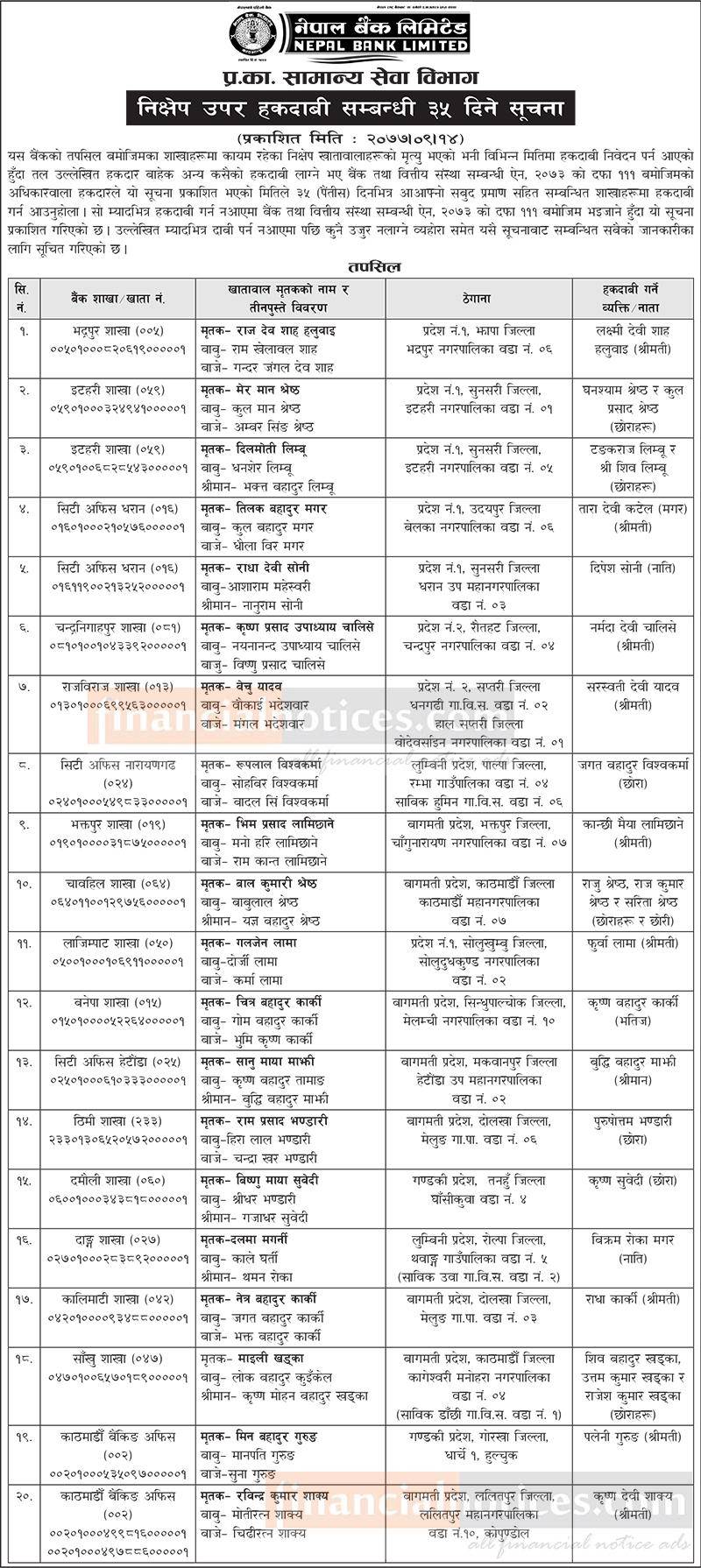 निक्षेप उपर हकदावी सम्बन्धी ३५ दिने सूचना