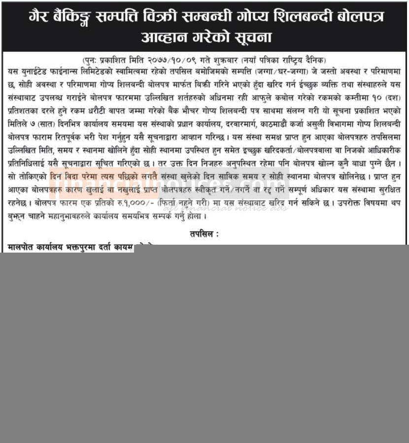 गैर बैंकिङ्ग सम्पत्ति विक्रि गर्ने शिलबन्दी बोलपत्र आव्हान