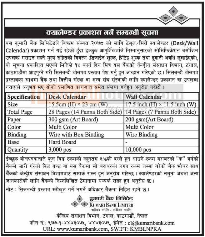 क्यालेण्डर प्रकाशन गर्ने बारे सूचना