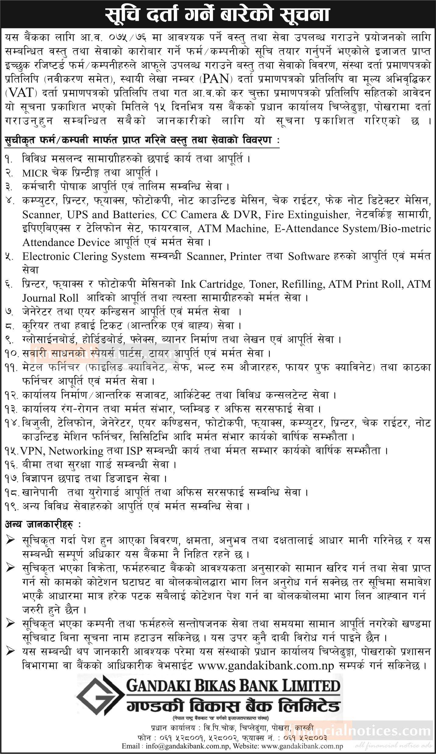 Vendor Listing Notice for Fiscal Year 2075-76