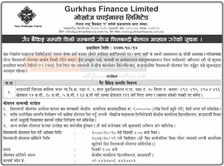 गैर बैंकिङ सम्पत्ति विक्रि सम्बन्धी गोप्य शिलबन्दी बोलपत्र आव्हानको सूचना
