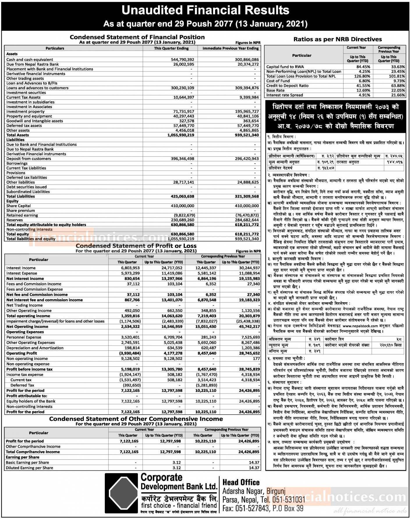 Published by Corporate Development Bank Official Page on 2077-10-15